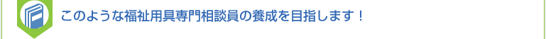 福祉用具専門相談員は、介護保険制度の担い手として、福祉用具の活用、住環境の整備という観点から、自立支援に資するケアマネジメントの実現を支える専門職です。そのような専門職として、以下のような福祉用具専門相談員の養成を目指します。