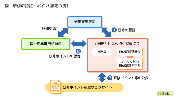 本制度に参加している福祉用具専門相談員は、①で認証された研修を受講したら、ポイントの申請を行うことができます。